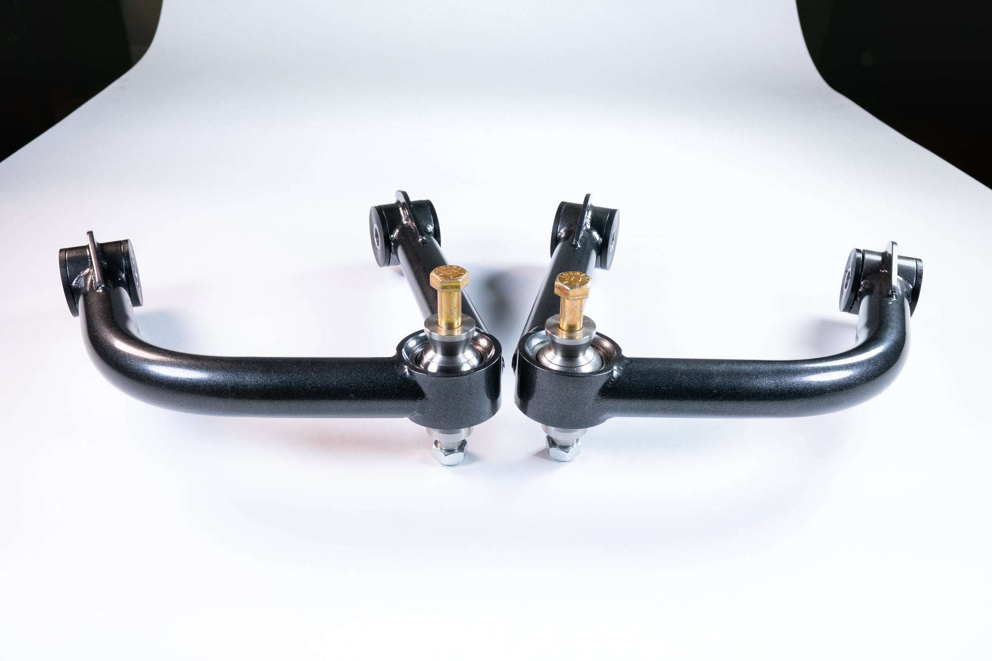 These arms are 100% American made, from the bolts to the raw metal used during fabrication. The arms come with zerk fittings for easy greasing of the bushings. The arms are constructed of chromoly 4130 tube and are all TIG welded with a powder coat finish. They utilize the highest quality 1" FK uniballs and custom machined stainless steel misalignment spacers. They also give you the option of using the factory shocks or upgrading to an aftermarket shock with the installation of your shock tower mount. The installation is straight forward and easy to bolt on. The Built Right Fab upper control arms are designed to bolt in to the factory location without any serious modifications. They give you the option of using the factory shocks or up grading to an aftermarket shock. They are easy to align and any good alignment shop will have no problem with them. They are recommended to be used when lift kits are installed to help fix caster and to prevent excessive tire wear due to bad alignment. The uniballs allow for better articulation than factory ball joints and last much longer. The arms are constructed of chromoly tube and are all tig welded with a powder coat finish. The arms come with zirk fittings for easy greasing of the bushings. USA made hardware and top lock nuts are used to insure that everything stays nice and tight when out on the trail or around town. All of our products and components that go into Built Right products are all 100% American made. We believe that it is best to keep hard earned American dollars in the hands of hard working Americans, instead of buying products overseas.